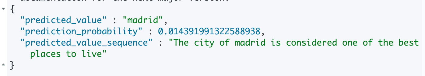 This POST runs the string through the model and, as you can see below, adds many fields to our ‘document’.